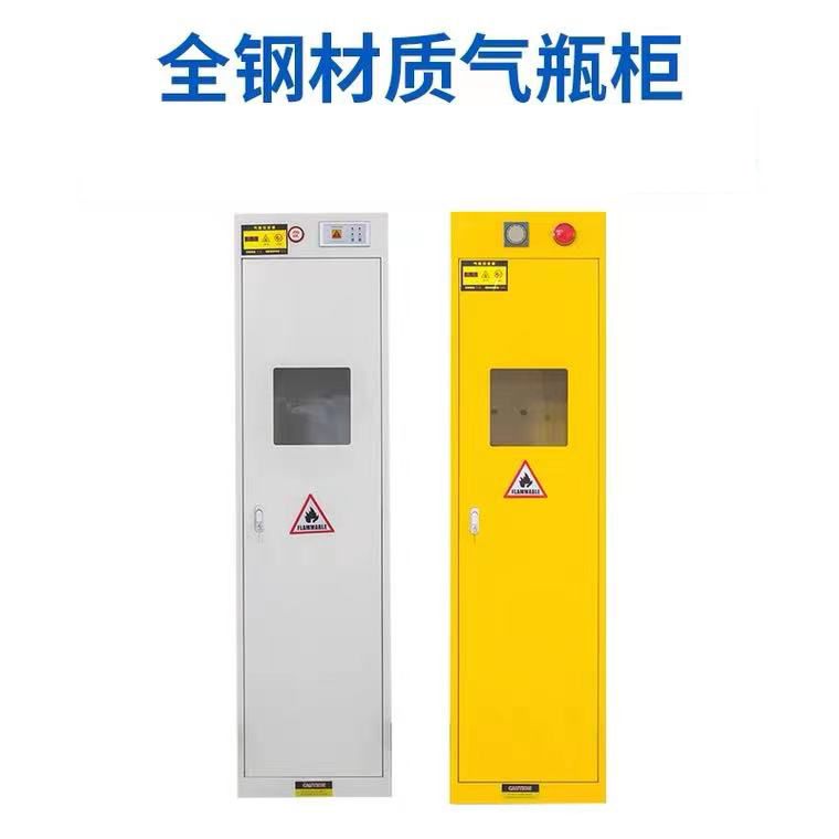3、柜體上部設(shè)有出風(fēng)口;特別設(shè)計翻推式墊板方便氣瓶推入使用,另可配自動報警裝置和自動排風(fēng)系統(tǒng)